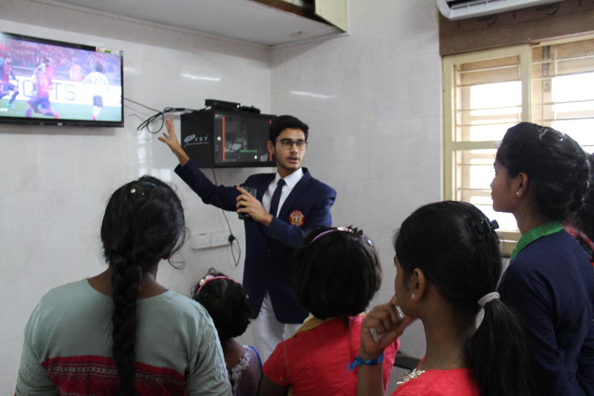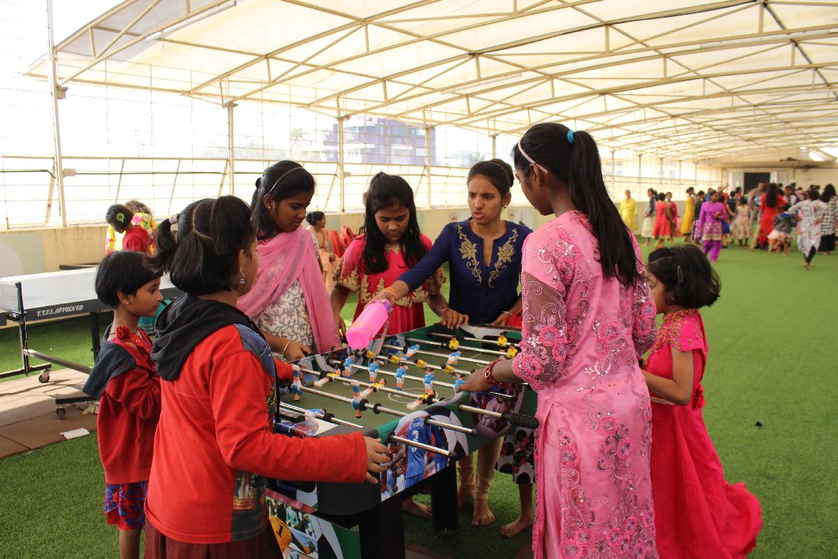 Parents of the School’s Helping Hands group and members of the Women’s Cell of St. Andrew’s Parish warmly welcomed the girls and stayed with them through the day taking care of all their needs. The children had a nourishing breakfast at the College canteen after which they assembled on the newly-turfed terrace which was inaugurated on the feast of St. Andrew last year. The girls shed their initial inhibitions as they danced to some Hollywood and Bollywood music.