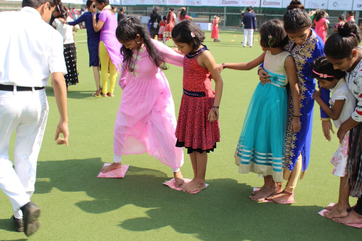 The children then proceeded to the turf ground where the Student Council, under the guidance of Sir Vinod Tarawade, had organised tele-games. The grounds resounded with the girls’ gleeful voices as every one of them in their colourful outfits ran animatedly from one game to another. The morning seemed to pass rather quickly but the girls built up a good appetite and enjoyed the delicious buffet laid out.